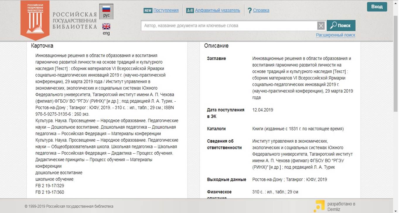 Тезисы в сборник Материалы VI Всероссийской Ярмарки социально-педагогических инноваций 2019г