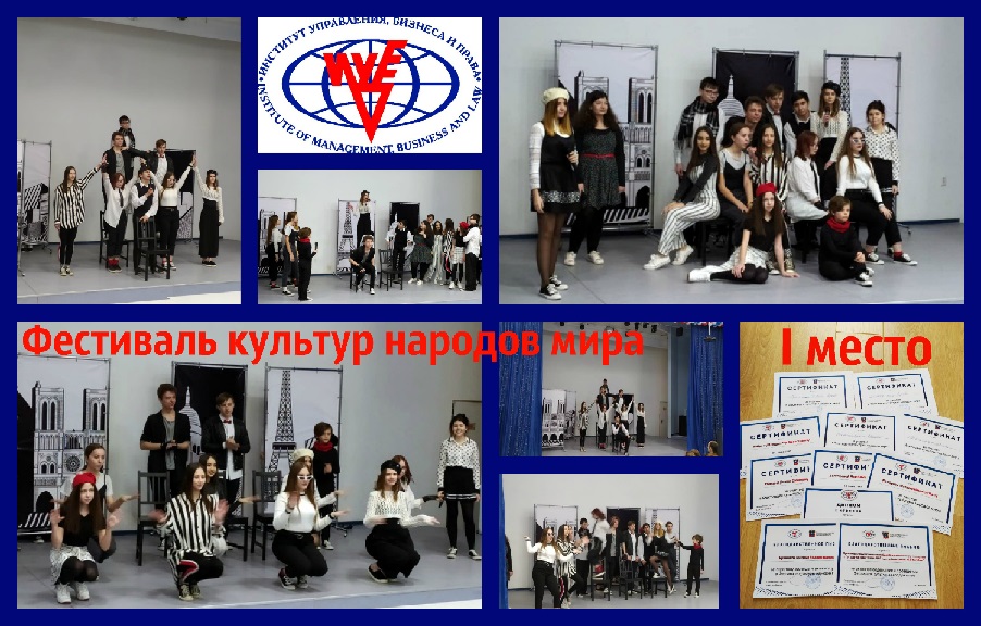 1 место в «Фестивале культуры народов мира», проводимом ИУБиП при поддержке Министерства культуры Ростовской области и Департамента экономики г. Ростова-на-Дону.